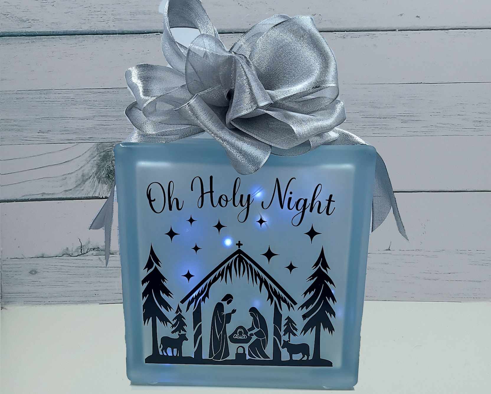 Home Custom Vinyl Designs Lighted Glass Blocks Oh Holy Night